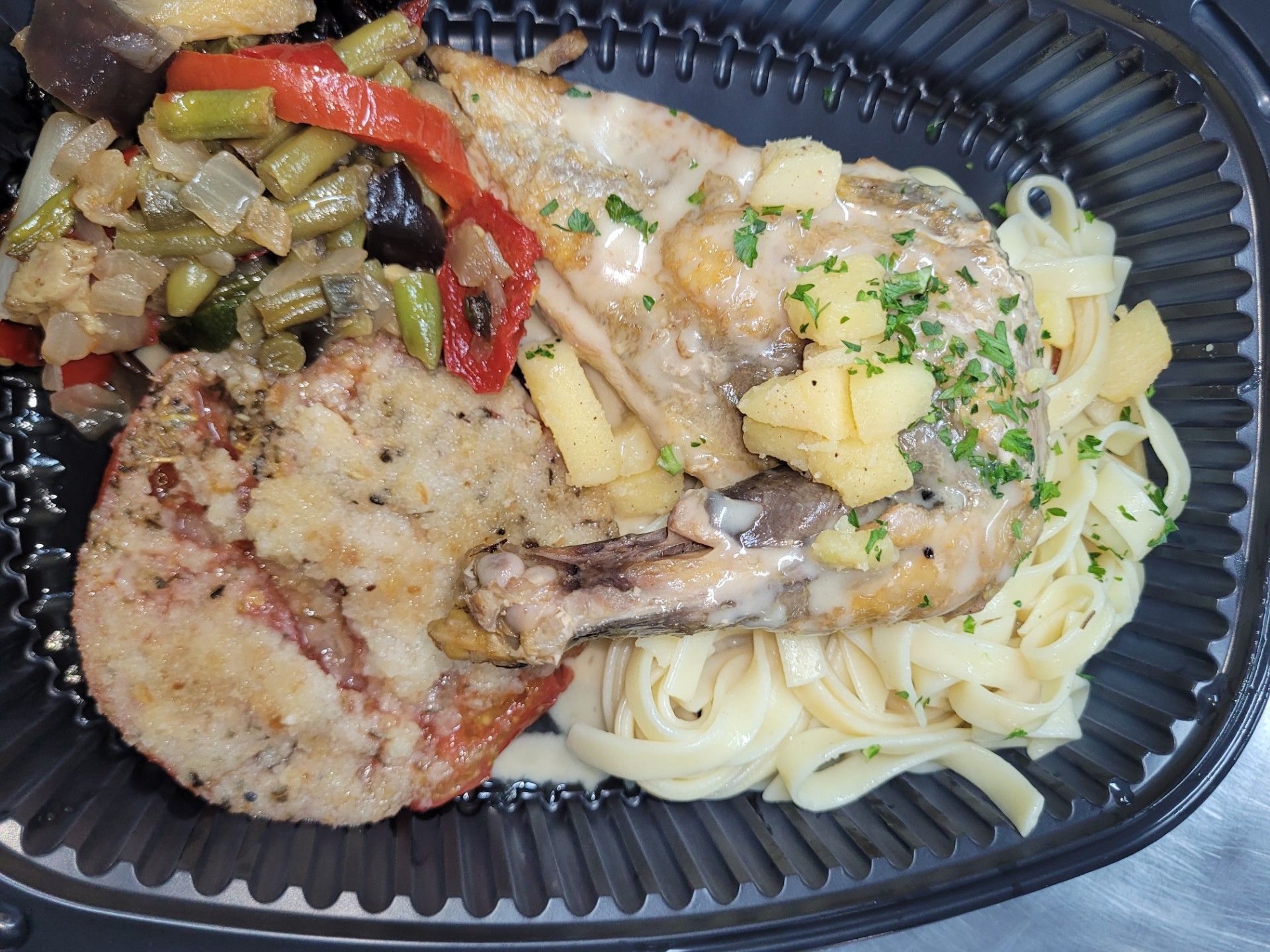 Tous nos plateaux-repas sont élaborés à partir de produits frais : nous recevons tous les matins nos légumes achetés auprès de producteurs locaux (boucher, maraîcher, poissonnier).
